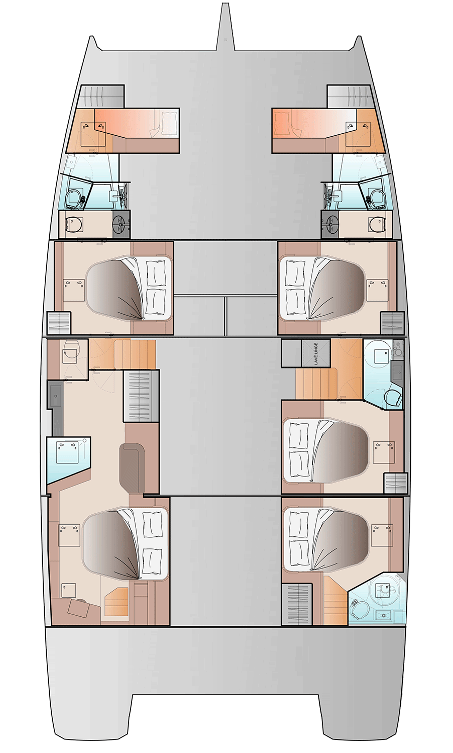 Up to 6 identical double cabins